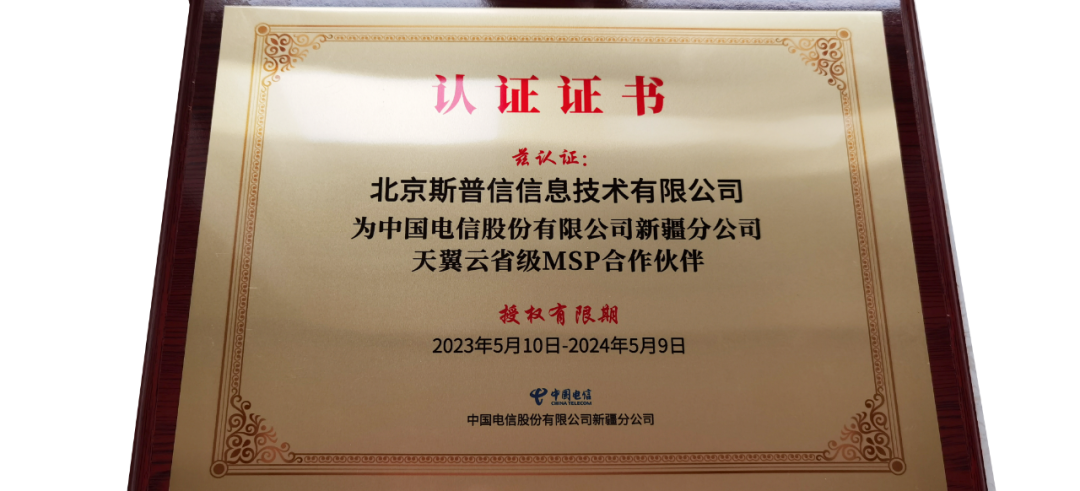 斯普信榮膺新疆電信天翼云MSP合作伙伴
